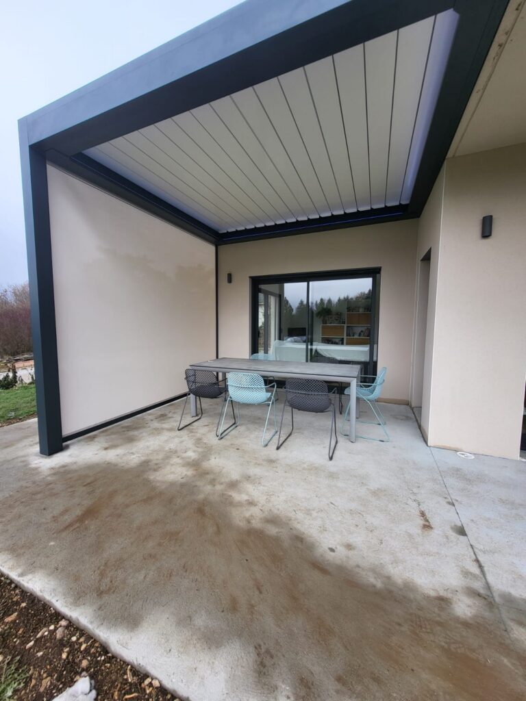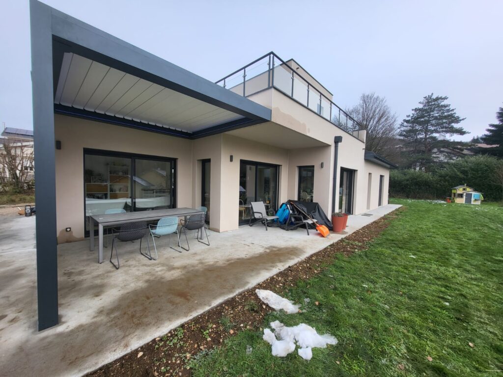 Pose d'une pergola bioclimatique motorisée à Oyonnax (01)